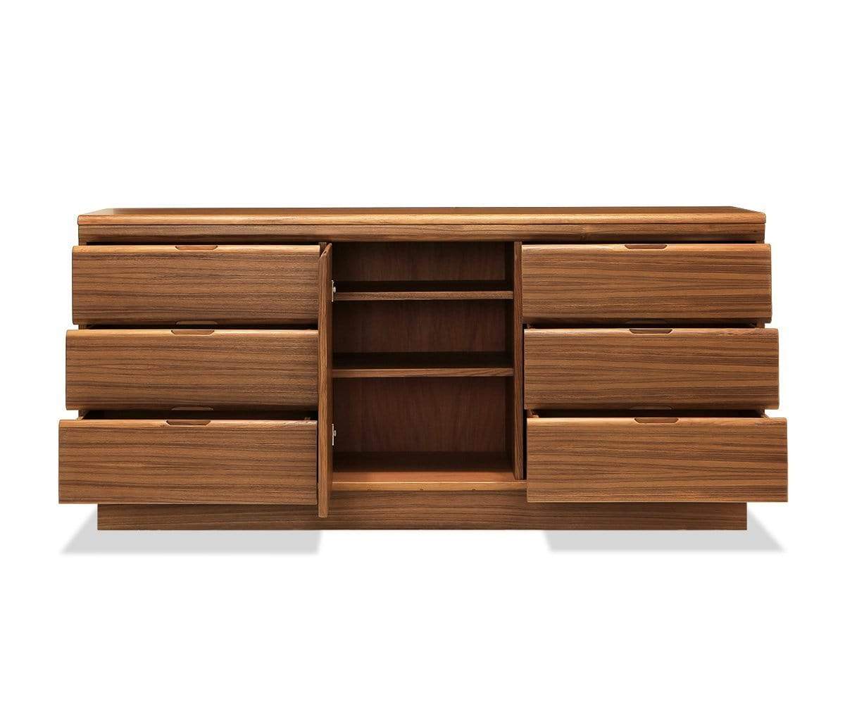 The Anisa double dresser is ideal for making a statement in larger bedrooms. Six large drawers and a single cubby provide ample storage space for your wardrobe. It's crafted with mix of solid teak and teak veneers. A natural finish to allows the wood grain to shine through.