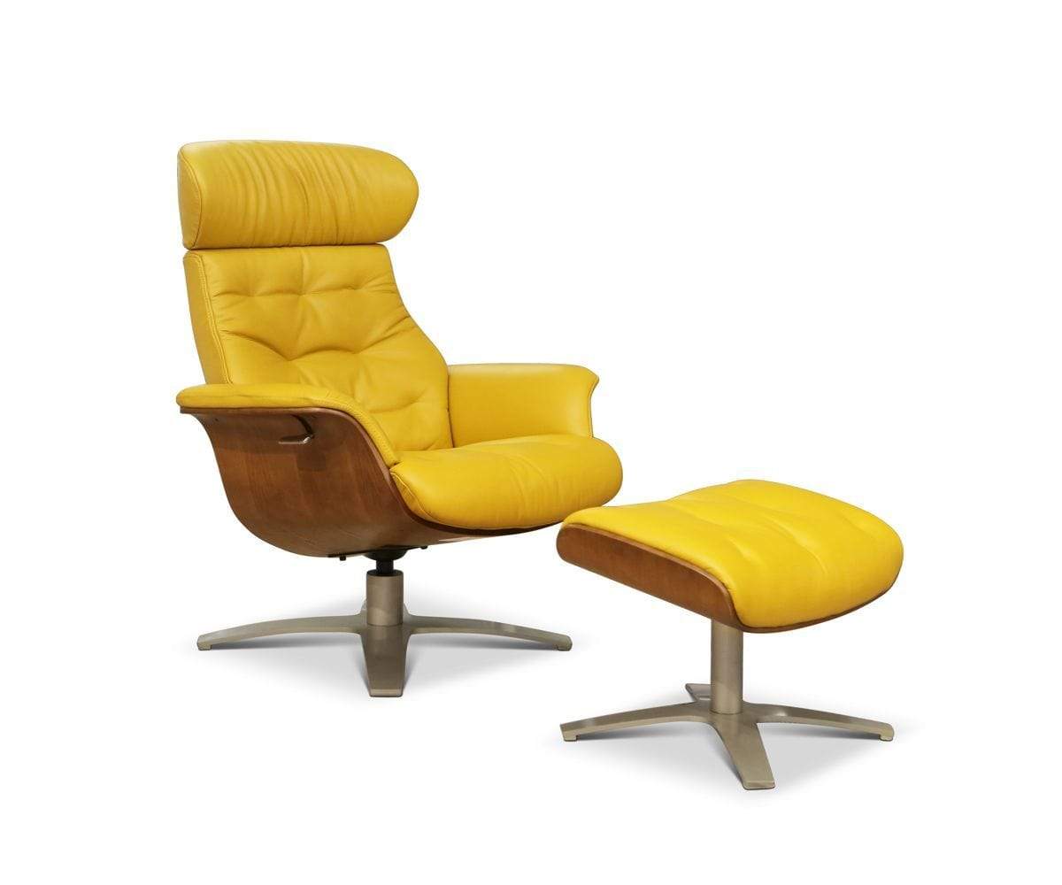 Ideal for your living room or lounge space, the Anselmo recliner and ottoman adds distinguished mid-century modern style. This classic style is made with a solid hardwood and bent plywood frame. Genuine leather upholstery is reinforced with button-tufting throughout. Plush cushioning is made more durable with sinuous spring suspension.