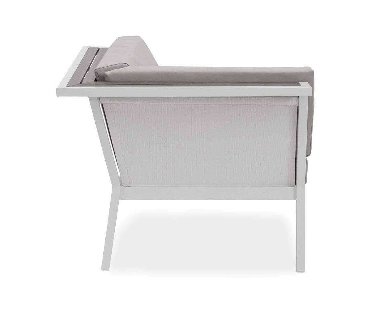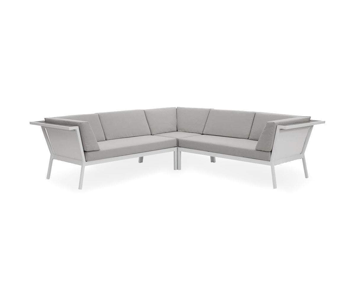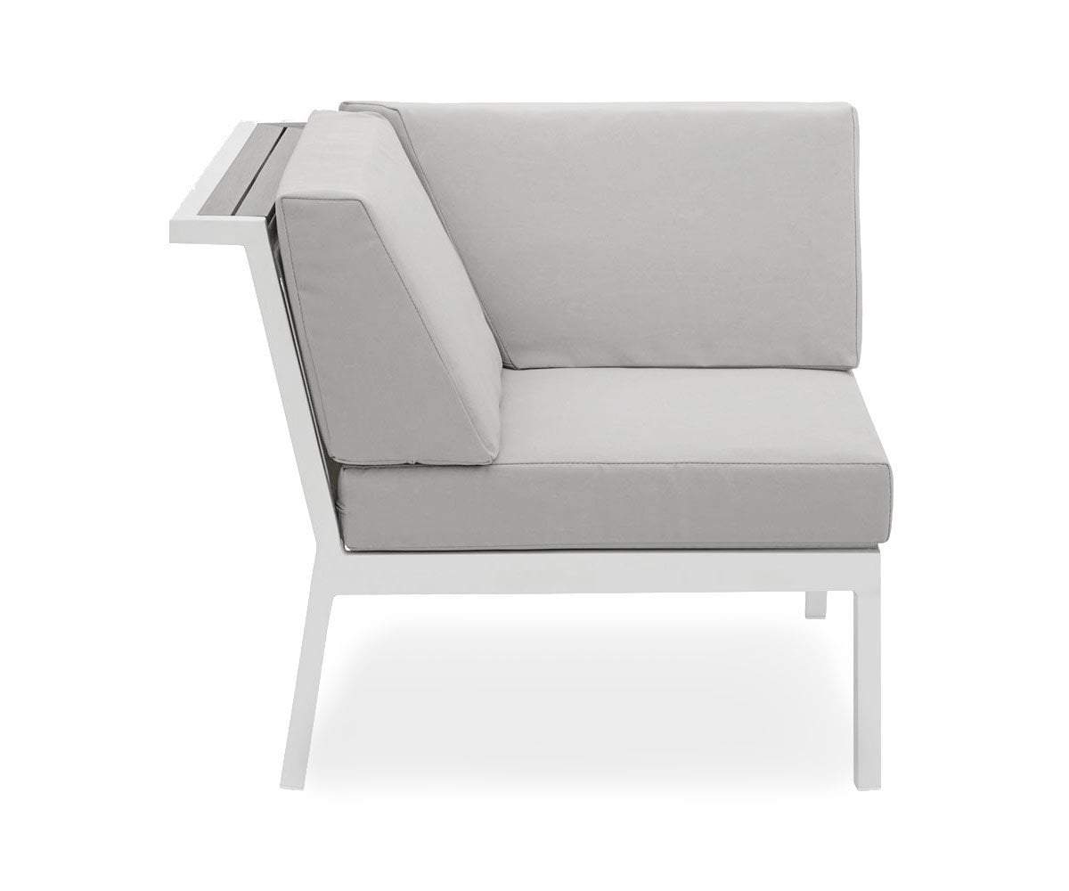 Set the tone for your outdoor space with a clean, contemporary aesthetic. The pale neutral shade of the Aurora outdoor sectional's frame subtly underscores resin-wood detailing. Each cushion is wrapped in high-performance Olefin material, which is water-repellent, stain-resistant and mildew-resistant. It also has a powerful color fastness rating to resist fading caused by UV rays.