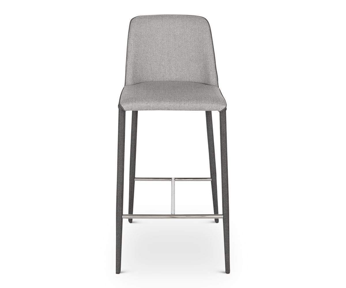 The Avanja counter stool adds immense style and comfort to your home bar. From seat to legs, this modern design is wrapped in two complementary shades of fabric, which easily pairs with any flooring our counter type.