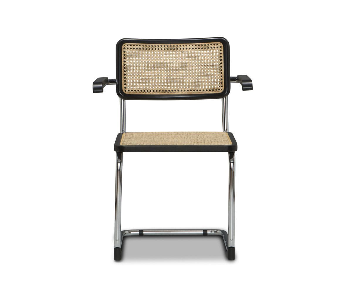 With an unmistakable mid-century look, the Bendt armchair masterfully combines elements to create an appealing addition to your dining room. The distinctive design features a cane seat and backrest bordered in solid European beech wood which are secured to the cantilevered metal frame finished in polished chrome. Armrests made of the same materials wrap around to allow for a comfortable resting position making mealtime, quality time.