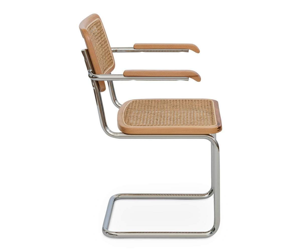 With an unmistakable mid-century look, the Bendt armchair masterfully combines elements to create an appealing addition to your dining room. The distinctive design features a cane seat and backrest bordered in solid European beech wood which are secured to the cantilevered metal frame finished in polished chrome. Armrests made of the same materials wrap around to allow for a comfortable resting position making mealtime, quality time.